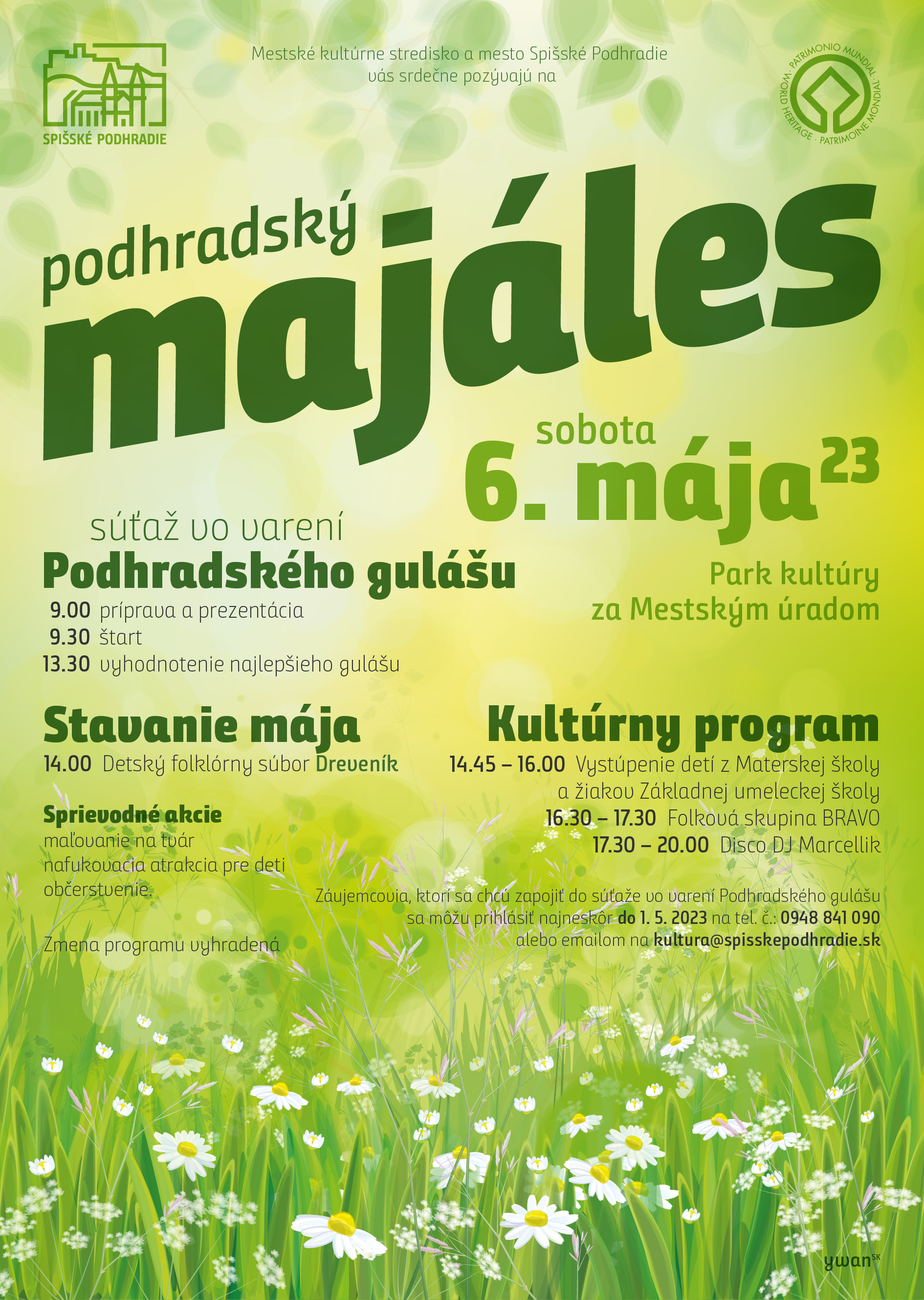 Srdečne Vás pozývame na Podhradský majáles, ktorý sa uskutoční 6. mája 2023 v Parku kultúry v Spišskom Podhradí. Bližšie informácie sú uvedené v prílohe.