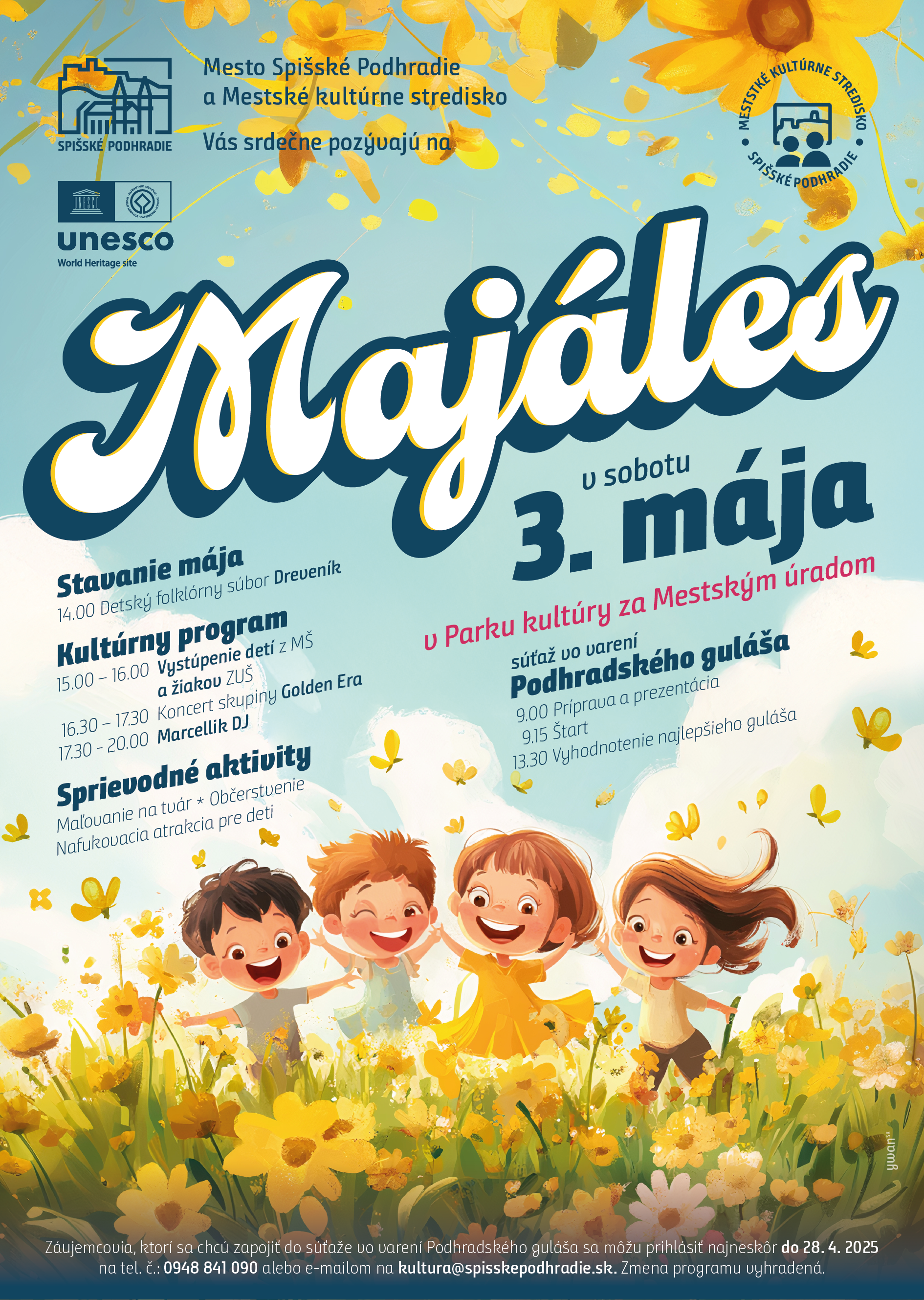 Srdečne Vás pozývame na tradičný Podhradský MAJÁLES, ktorý sa uskutoční v sobotu 3. mája 2025 v Parku kultúry za Mestským úradom.